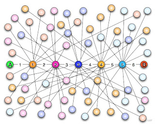 A Teoria dos Seis Graus de Separação ou distância surgiu, pela primeira vez, em finais dos anos vinte, do século passado. A Teoria estatística proposta pelo Hungaro Karinthy exponenciava uma cultura desenvolvida antes da primeira grande guerra (o continente Europeu esteve em guerra durante 1500 anos e a esta chamam-lhe a primeira... coisas de marketing) onde brotavam teorias que permitissem optimizar a organização, em grande desenvolvimento, das cidades e das suas circunstâncias.